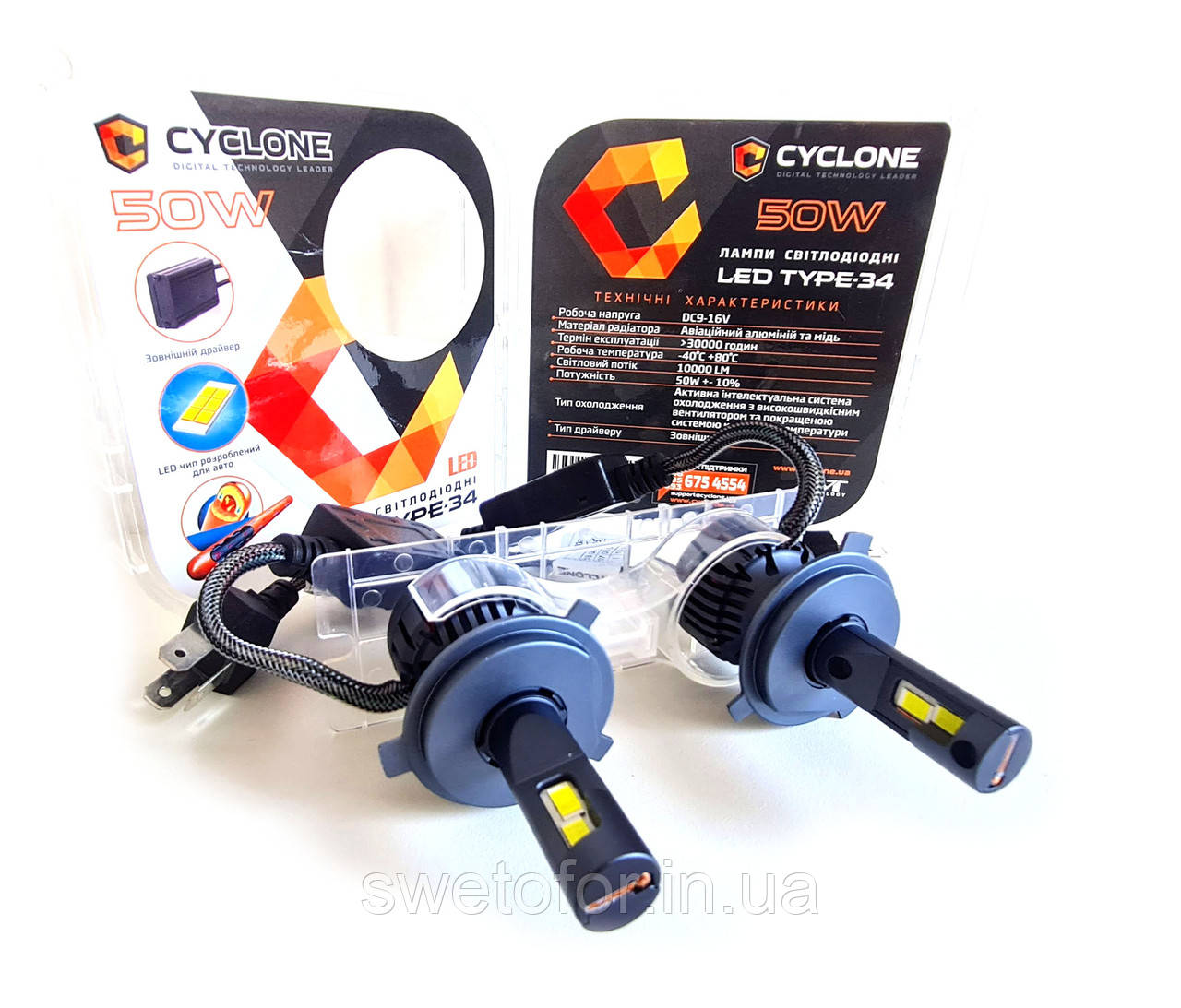 CYCLONE LED H4 5500K 10000LM TYPE 34 — це високоякісні автомобільні LED-лампи, що забезпечують потужне та яскраве освітлення для вашого автомобіля. З потужністю в 10000 люменів і температурою кольору 5500K, вони створюють яскраве біле світло, яке ідеально підходить для будь-яких дорожніх умов, забезпечуючи чудову видимість і безпеку.